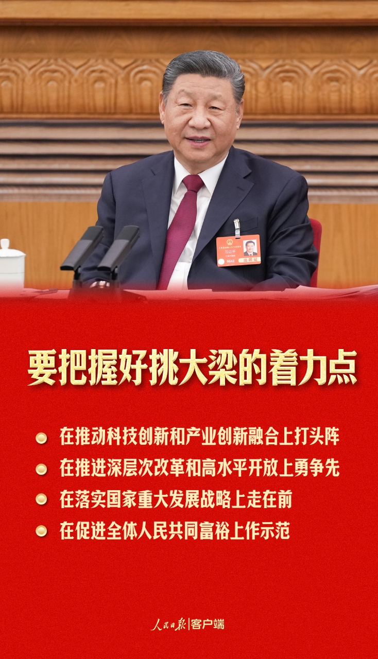 2023年1月,習(xí)近平總書記在江蘇當(dāng)選第十四屆全國人大代表。連續(xù)三年到江蘇代表團(tuán)參加審議,總書記都提到了“挑大梁”這個(gè)關(guān)鍵詞。