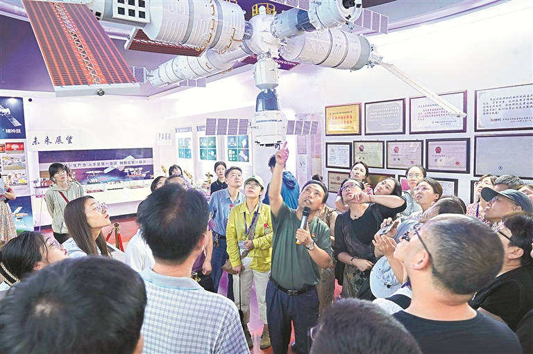 不同于傳統(tǒng)觀光旅游,星箭公司將生產(chǎn)車間、科技展廳、文化陣地融為一體,對外開放部分生產(chǎn)線與展廳,構(gòu)建起“觀、學(xué)、悟”一體化的研學(xué)體系。截至目前,已累計接待社會各界人士近30萬人次,其中包括大中小學(xué)生、機關(guān)干部、企業(yè)家、部隊官兵等。